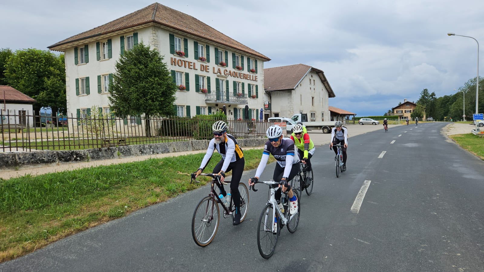 Nachdem wir uns gestärkt hatten, verliessen wir die Stadt über eine vielbefahrene Strasse und waren froh, bald abbiegen zu können. Es folgte ein angenehmer Anstieg zur Schweizer Grenze bei La Grande Borne, dann eine Abfahrt nach L’Auberson. Danach ging es noch über den Col des Etroits zu unserem Tagesziel Ste-Croix. Im Hotel de France genossen wir ein feines Abendessen. Einige konnten es sich nicht verkneifen, danach den in der Gegend produzierten Absinth zu probieren. Ich kann aber versichern, dass es bei einem Glas blieb!